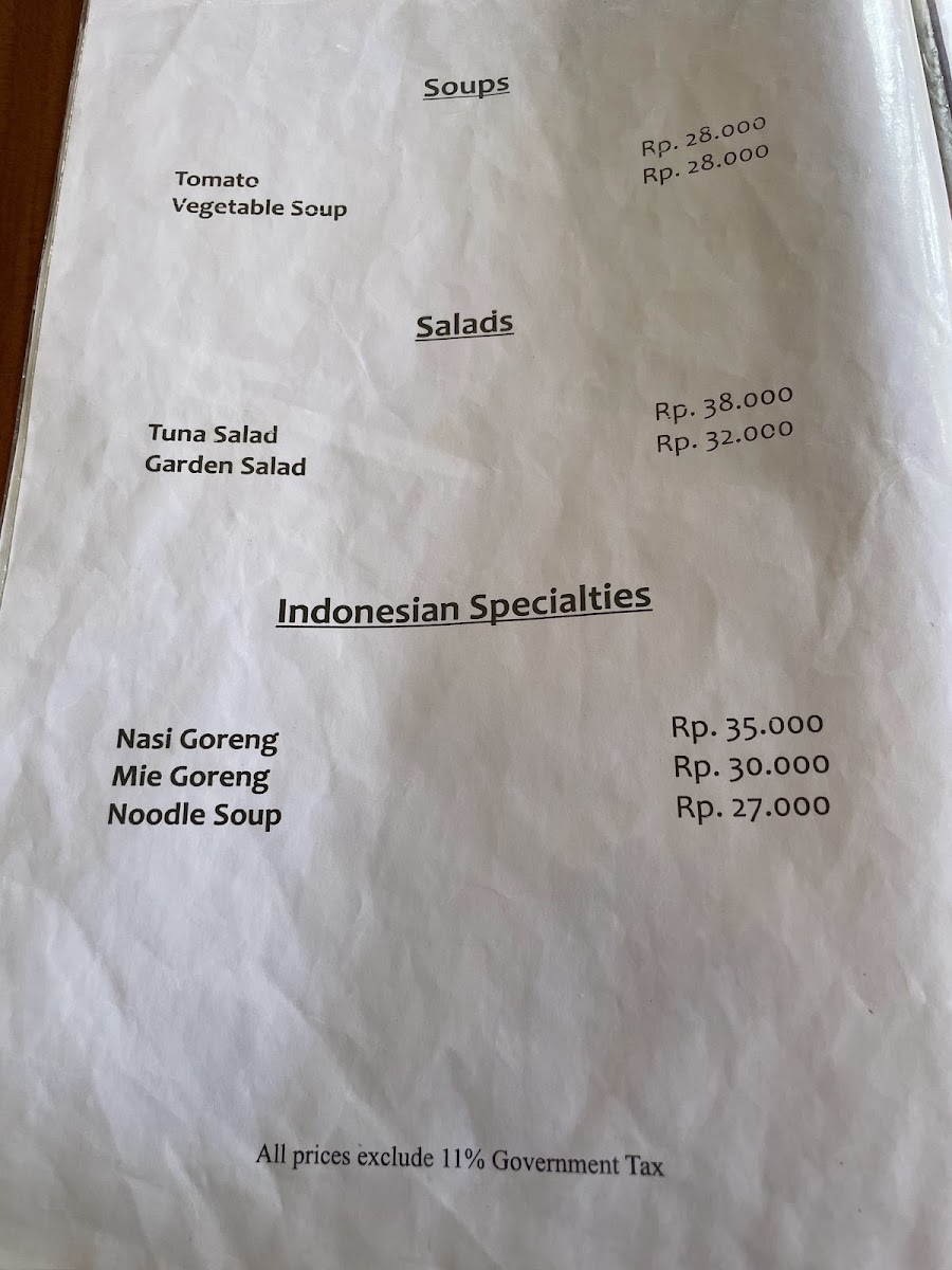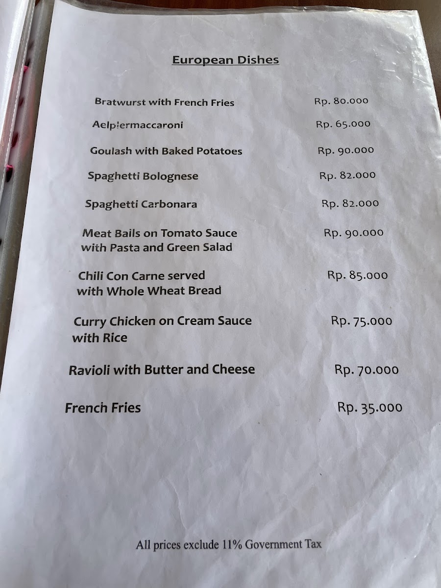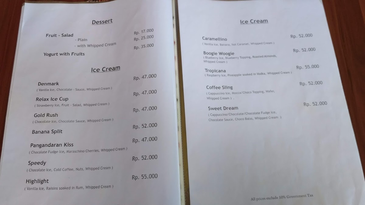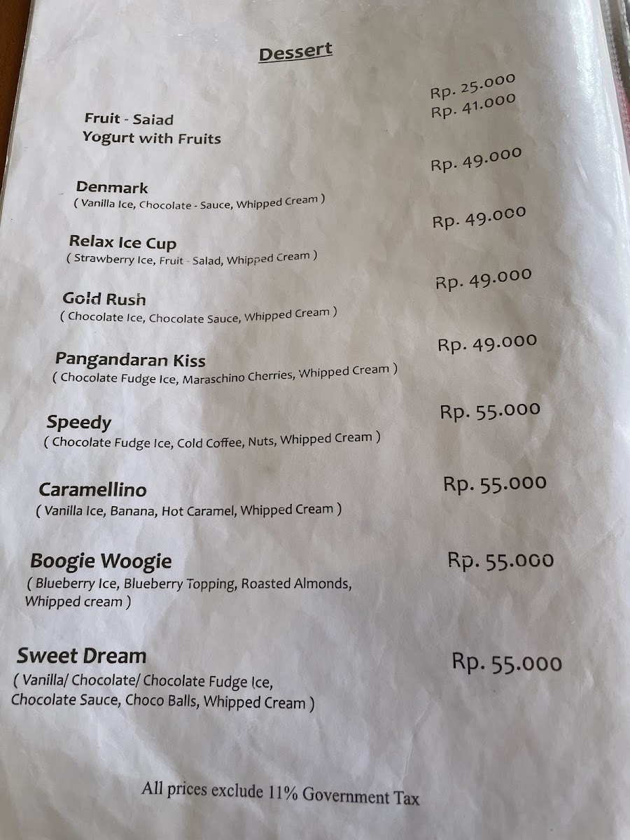 Restaurant Relax in Pangandaran offers a delightful menu that blends local flavors with international comfort foods. For those craving a sweet treat, the Banana Split stands out as a must-try, perfectly balancing the rich flavors of creamy ice cream with the freshness of bananas. The drink menu also impresses, featuring refreshing options like Beer, an ideal pairing for the restaurant’s savory dishes. Among the hearty offerings, the Goulash is a flavorful choice, with tender meat in a savory, spiced broth, sure to satisfy any comfort food lover. For a more filling option, the Fried Rice is a crowd favorite, delivering a savory and satisfying dish, packed with vegetables and protein for a well-rounded meal. With a variety of dishes to cater to all tastes, Restaurant Relax offers a pleasant and diverse dining experience.